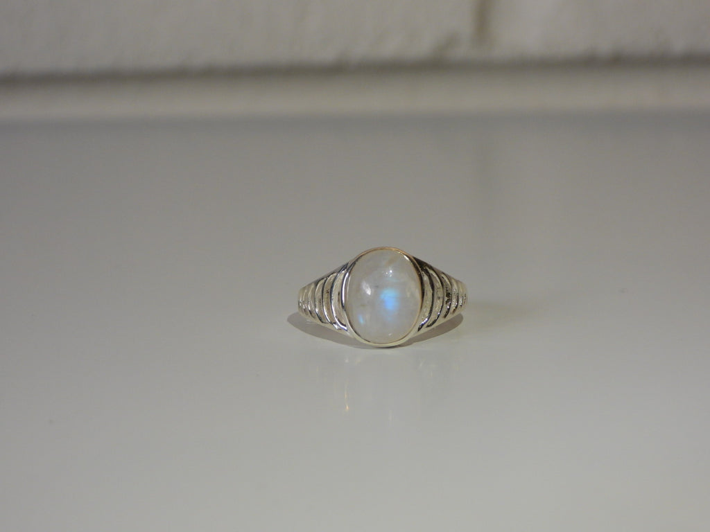 A gorgeous Sterling Silver ring with an oval Moonstone setting.